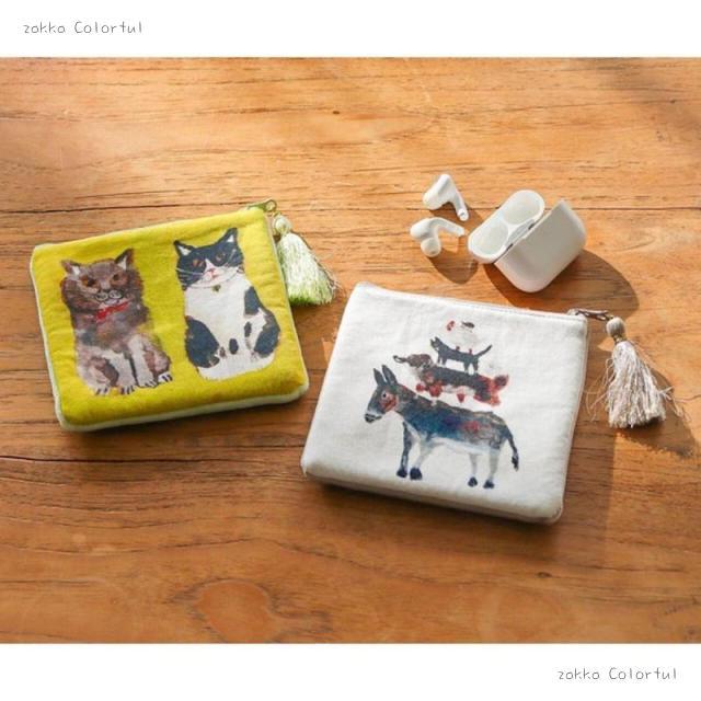 92640054 アトリエコテツ クッションポーチ S ネコGR 2,000円(税込2,200 円) 【欠品中】