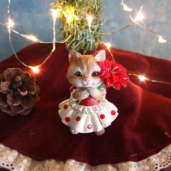 ビンテージアニマルデコレーション キャット&ポインセチア