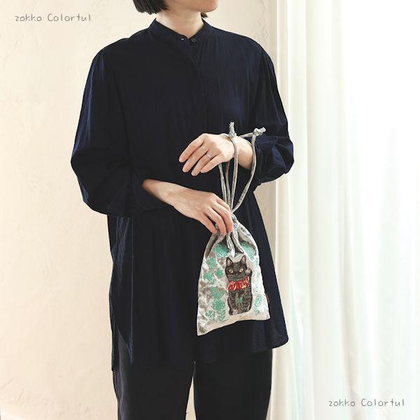 彼女の世界観を刺繍で丁寧に表現しました。小物やアクセサリーの収納はもちろん、ギフトバッグとしてもおすすめです。
