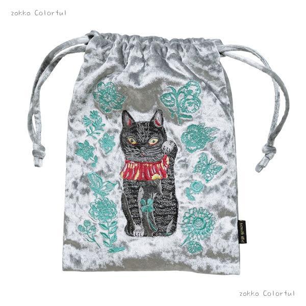 商品名: Nathalie Lete Velour Drawstring pouch Lucky cat-BK