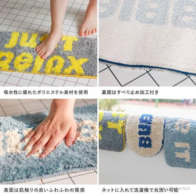吸水性に優れたポリエステル繊維を使用し、ふんわりとした踏み心地で足元の水分をしっかりキャッチ。