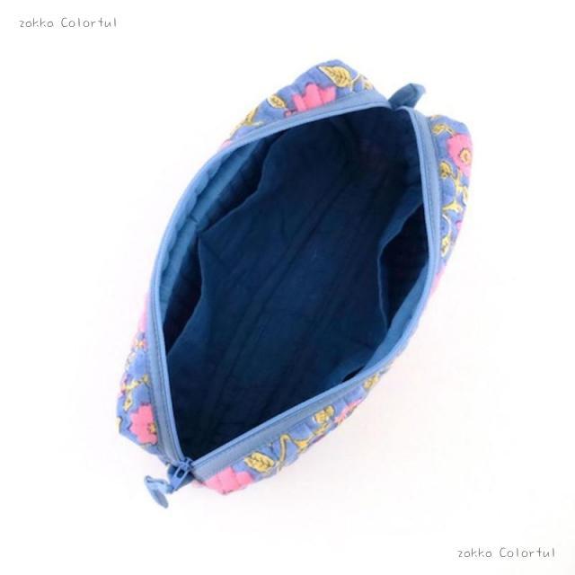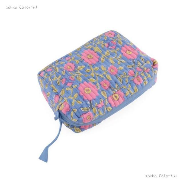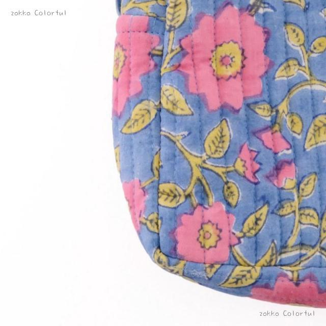 商品名: ブロックプリントのキルティングポーチ ベインフラワー BL