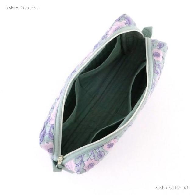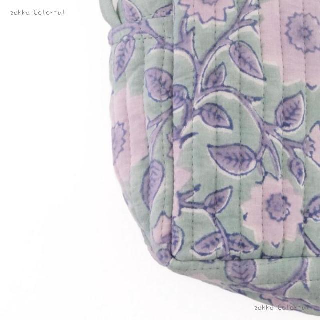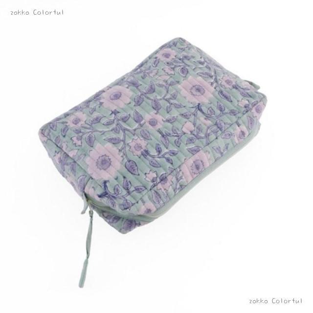 商品名: ブロックプリントのキルティングポーチ ベインフラワー GN