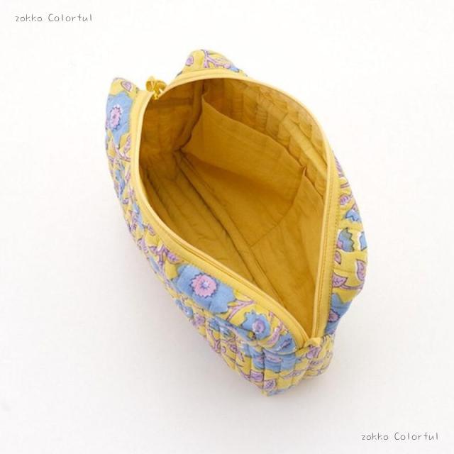 商品名: ブロックプリントのキルティングポーチ ベインフラワー YL