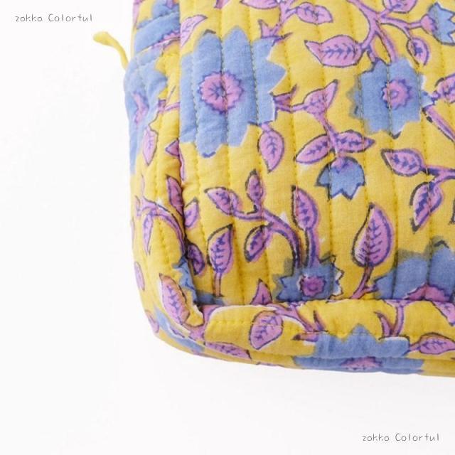 ブロックプリントのキルティングポーチ ベインフラワー YL
