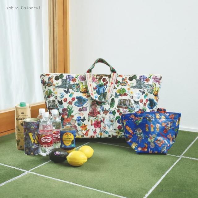 ナタリー・レテさんの色鮮やかな総柄イラストが楽しい、コンパクトな保冷バッグです。