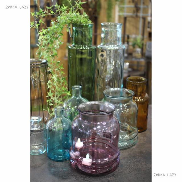 スペインバレンシア地方で1985年から続いている工房で職人の手によって作られた、100%リサイクルガラスのボトル。地球環境を考え、100%リサイクルをモットーに京都議定書やクリーンハウスガスに関する国際的な条約に遵守したものづくりを行っています。集めたガラスを自社で色ごとに分別し、デザイン、品質、色、共にリサイクルガラスの良さを活かし、その価値を作り上げています。本来は埋立てられるはずのガラスをリサイクルすることは、サスティナビティーの最も良い例と考えられます。このスペインバレンシアの工房では、300人を超えるスタッフが働き、その中でも特に職人の養成に力を入れ、伝統技術と最新技術の両方を駆使して、商品が作られます。