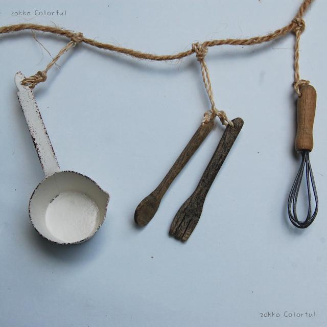 キッチンやガーデニングツール、インテリアの古道具たちがちいさなガーランドになりました。