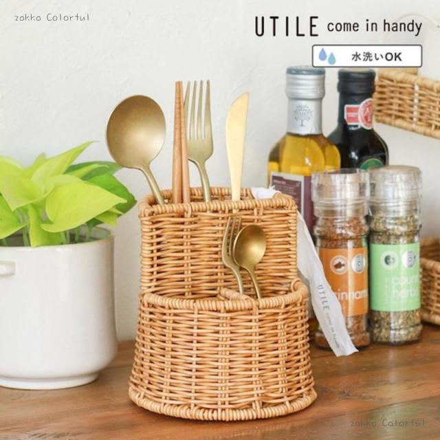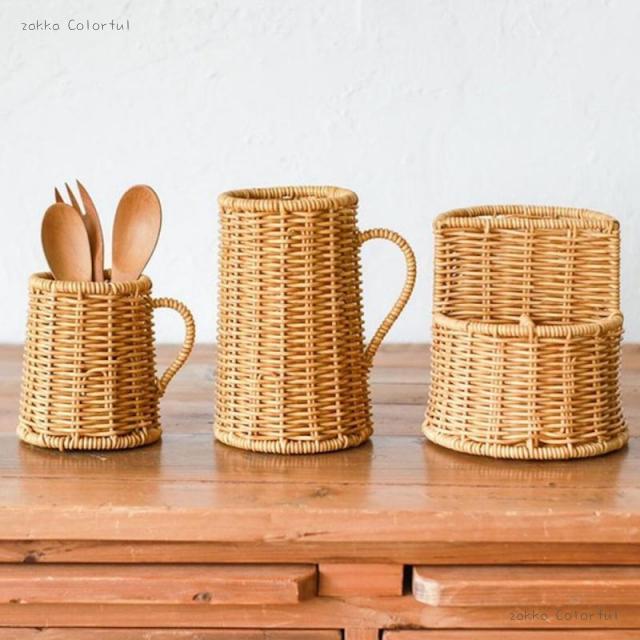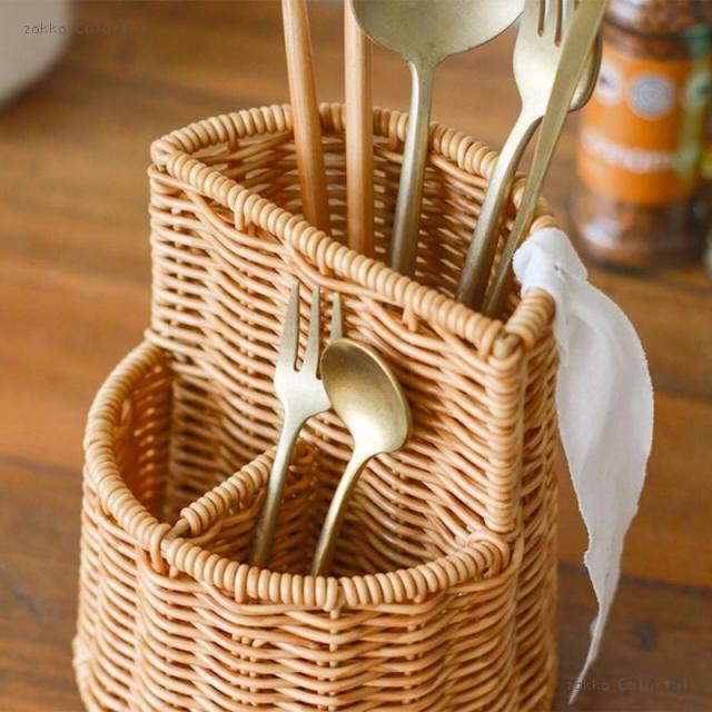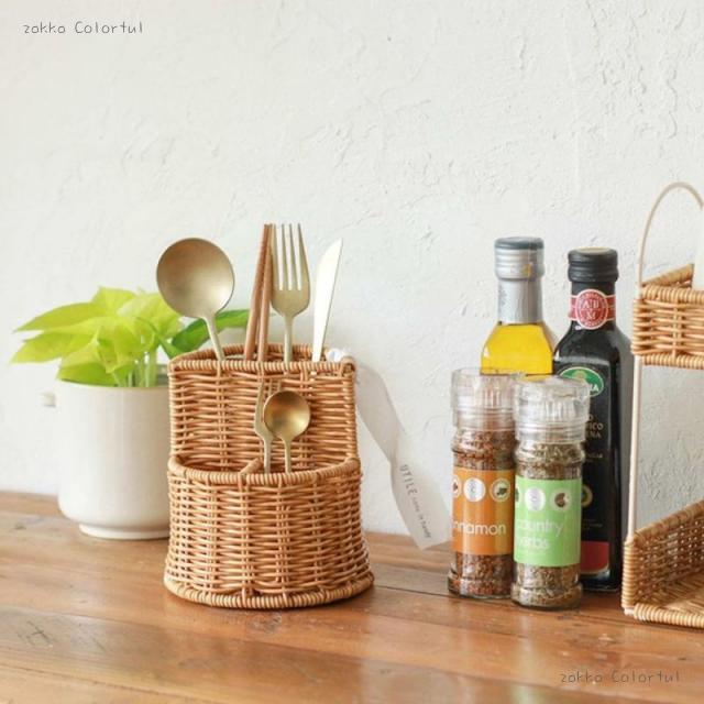 かご編みのナチュラルな風合いがやさしく映える、カトラリースタンド コンビ。